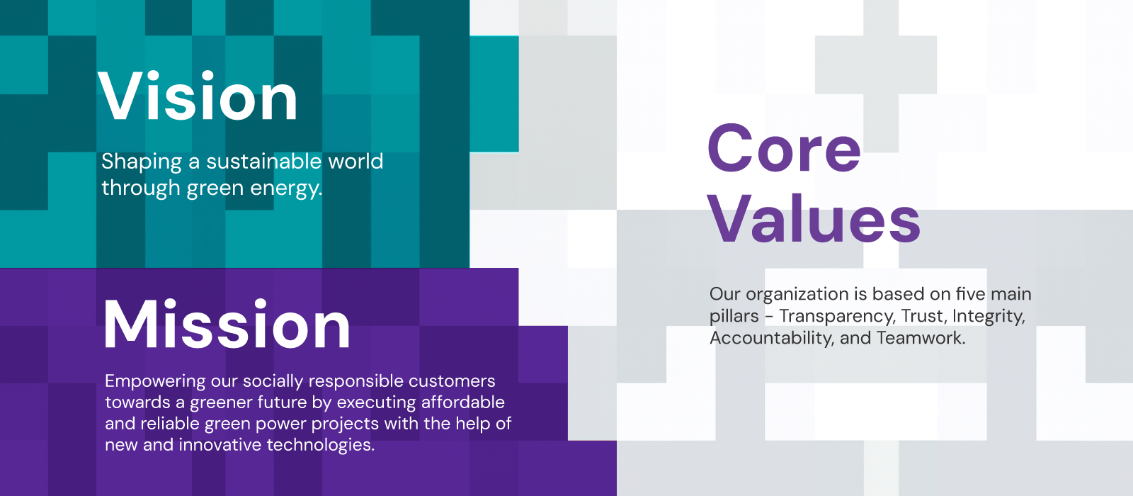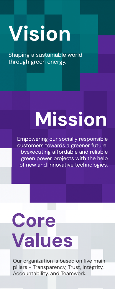 Empowering our socially responsible customers towards a greener future by executing affordable and reliable green power projects with the help of new and innovative technologies.
